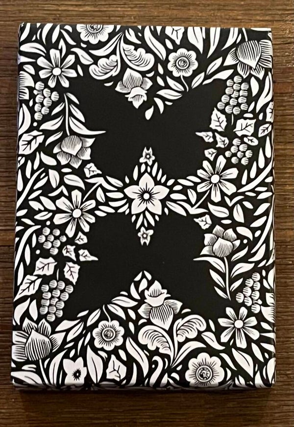 The Black and Silver edition features shiny silver foil on all of the court cards, the Ace of Spades, one of the two jokers and of course, the back design. All four aces have large custom centre pips in the theme of the floral back design.