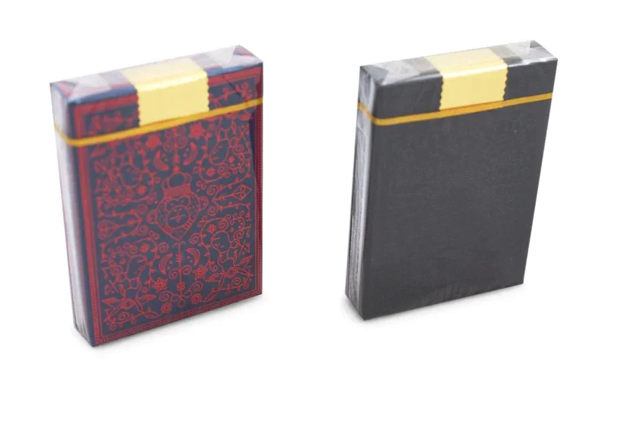 The deck blends together iconic imagery and organic elements. The unique design of the tuck cases has hidden bananas and monkeys throughout. Both the black-on-black and red-on-black editions feature intricate foil etchings on the surface.