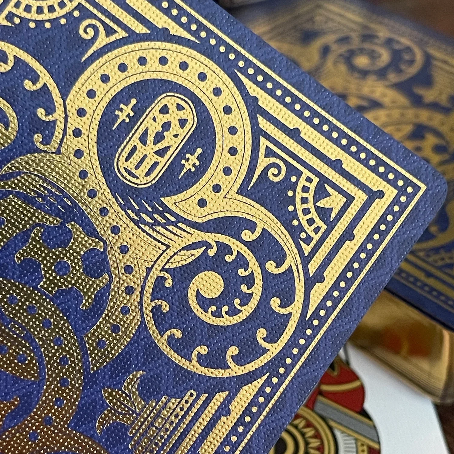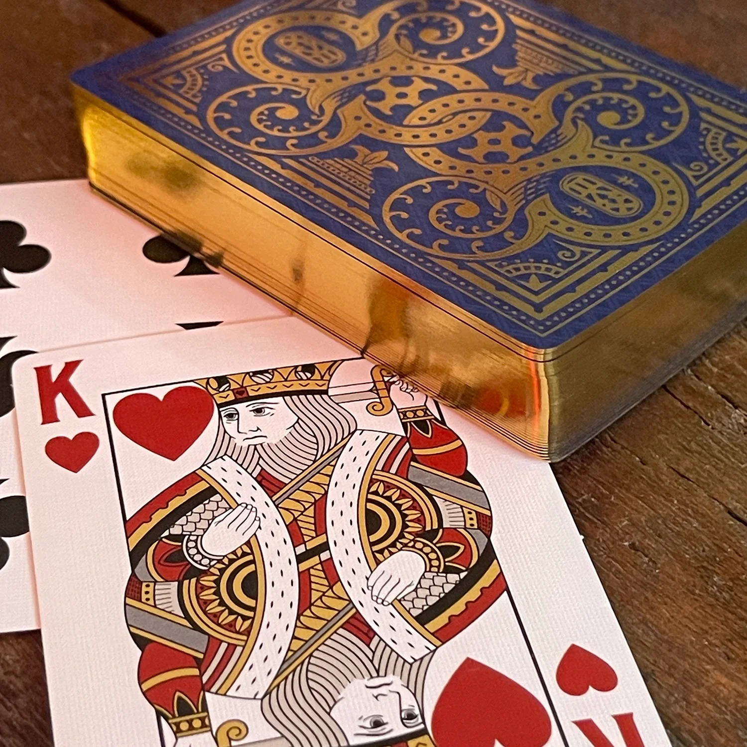 This deck is an exact replica of the one featured in the Solitaire17 app. It's distinguished by its luxurious gold foil detailing on the back, adding a touch of elegance. While the face designs are standard, maintaining a classic look familiar to casual players, the overall deck adheres to traditional styles.