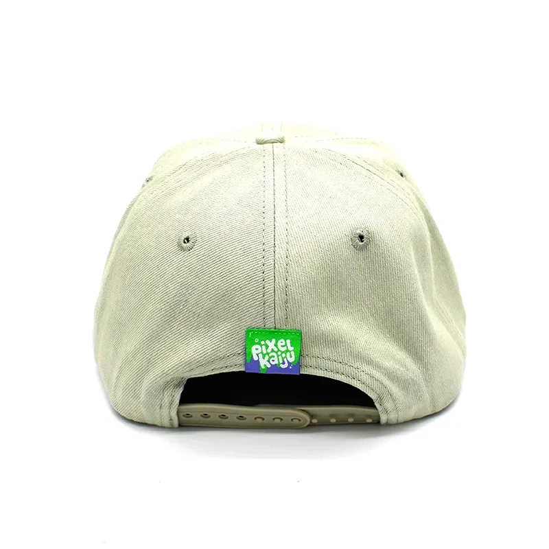 The rim is made of light brown cork, with Pixel Kaiju’s enchanting monster artwork on the bottom. The cap is finished with a convenient plastic snap closure at the back, so the fit can be adjusted for all wearers.