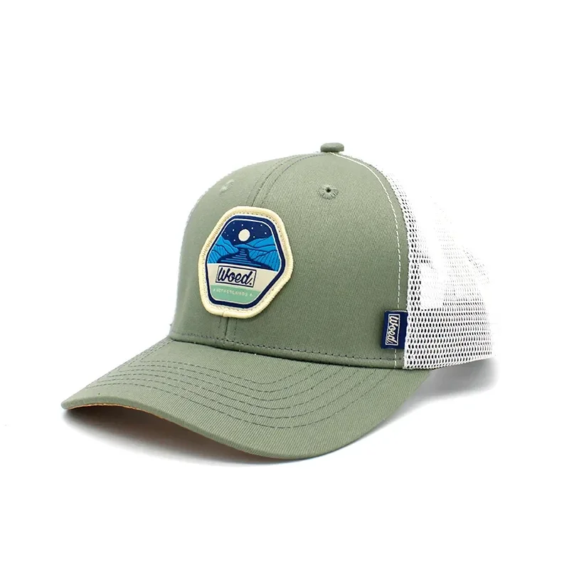 The front features a beautiful woven patch, which not only makes a statement, but also attracts attention with its unique design. The bottom of the flap features a subtle detail that makes all the difference – a light brown cork coating that is not only visually appealing, but also adds a touch of natural elegance to the cap.