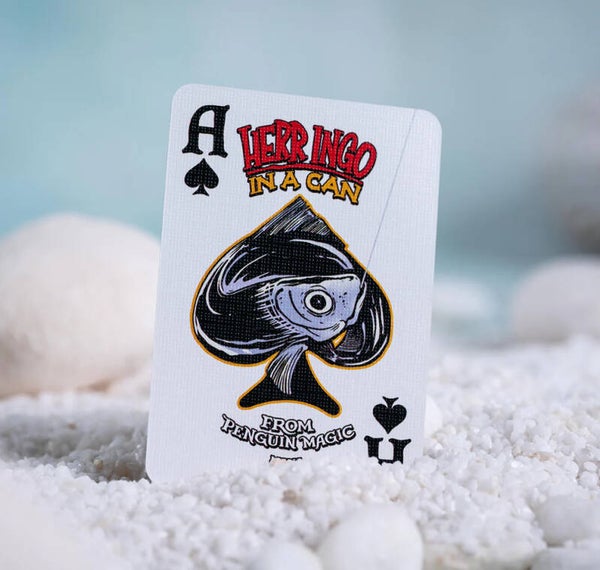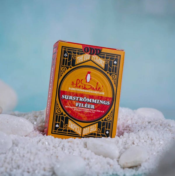 Stockholm17 proudly presents the latest addition to the Odd Fellows family: Herr Ingo in a can. This unique mini deck is the result of a collaboration with Penguin Magic. Herr Ingo complements the series' main character, a herring (yes, Herr-Ingo!), which serves as a food source for penguins. The concept takes a playful twist from the infamous "rotten fish challenge," inspired by Sweden's notorious delicacy, Surströmming—a fermented fish in a can, renowned for its pungent aroma and daring reputation.