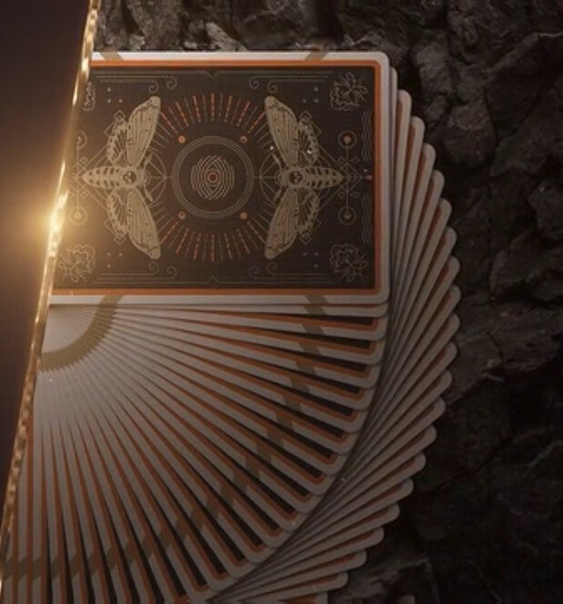 This unique marking system offers a highly visual read of the selected card from a distance without any noticeable peeking. The system is concealed within the deck’s astrology theme, using moon cycles and sun rays as its core. Another feature of this marking system is that its location varies during the cards’ riffling, as they are animated like a flipbook! Mesmerizing rotating sun rays, accompanied by cycling moon sequences, create a beautiful accent to these elegant graphics.