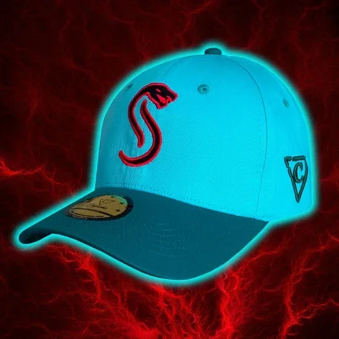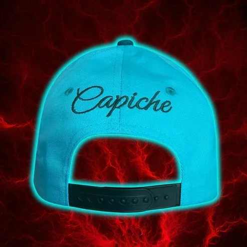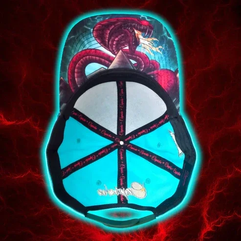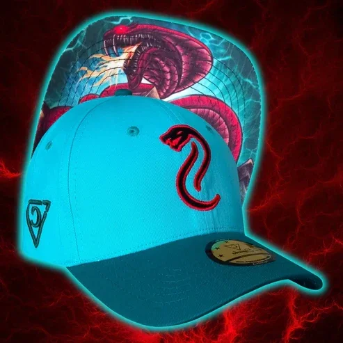 Fire Snake is a blue curved baseball hat with a petrol blue brim and an awesome red snake logo. The left side is embroidered with the traditional ‘C’ logo and the back is embroidered with ‘Capiche’.